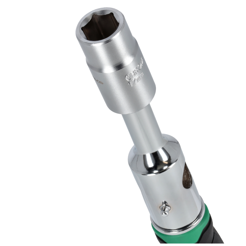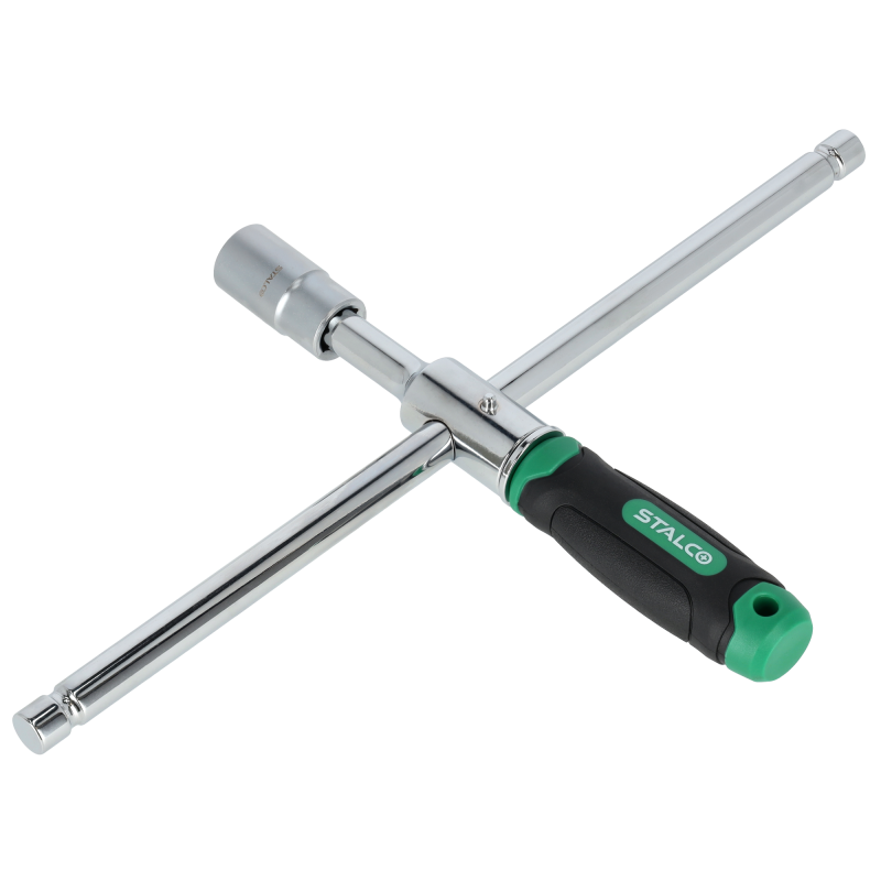 realizată din oțel CrV cu mufa cu două fețe 17×19 mm (cea mai populară dimensiune a șuruburilor sau piulițelor pentru roțile de mașină) cheia are o structură rotativă, datorită căreia puteți deșuruba și strânge roțile foarte rapid datorită brațului glisant. este posibil să folosiți o forță mult mai mare atunci când deșurubați ambalat într-o cutie practică