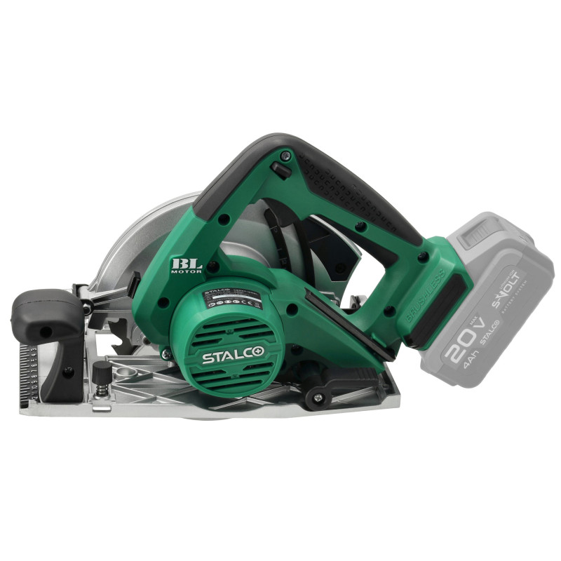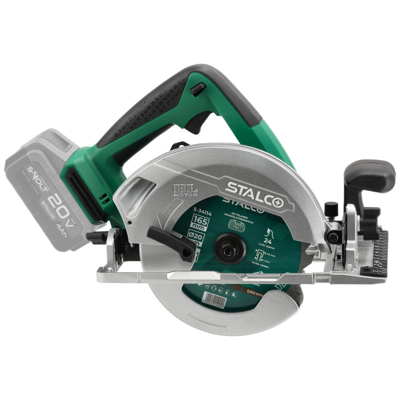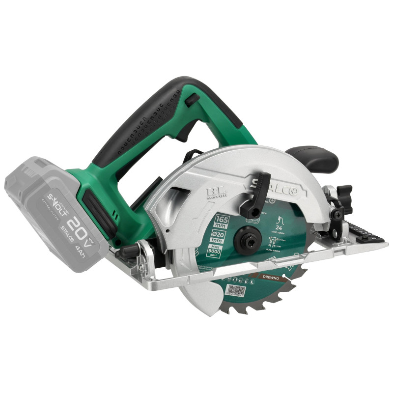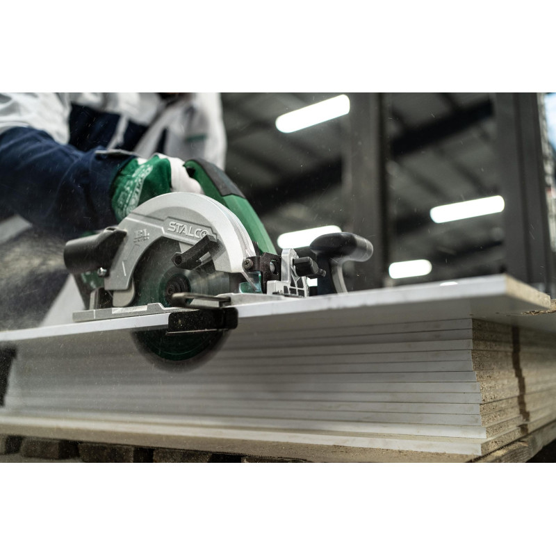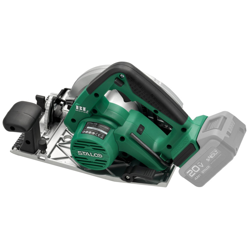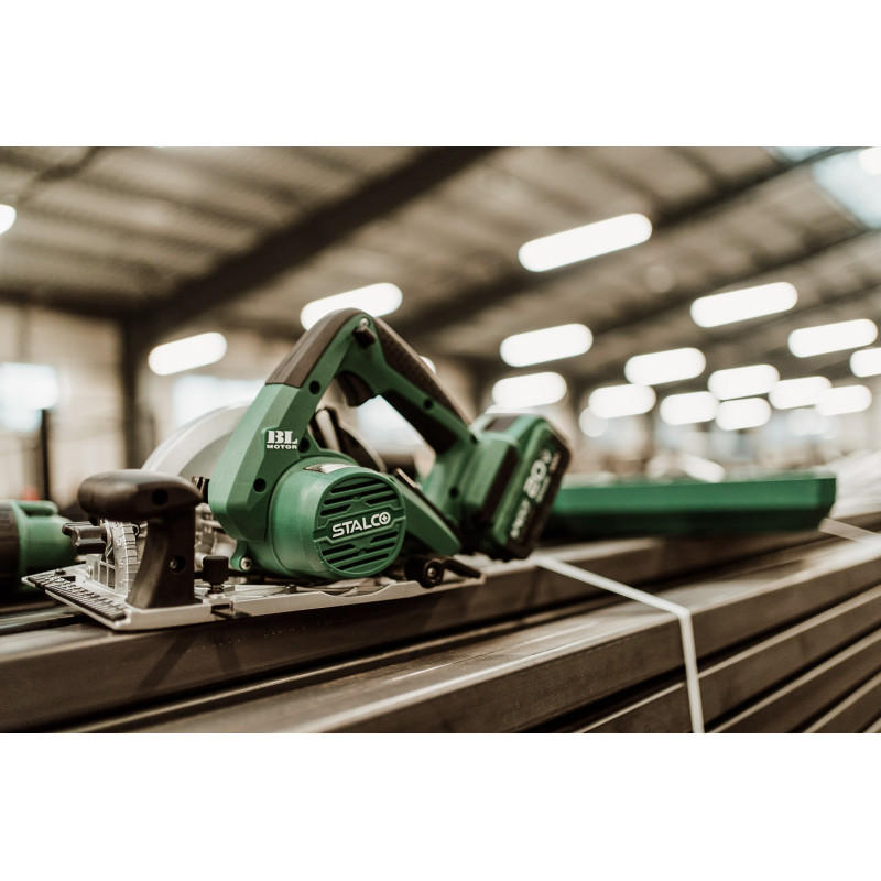 Ferăstrăul circular manual fără fir CSS20-165BL este un instrument conceput pentru tăierea lemnului, scândurilor de mobilier, placajului sau a altor materiale pe bază de lemn. Proprietățile sale vor fi utile în timpul lucrărilor de construcție, precum și în atelierul de tâmplărie. Aparatul suportă ferăstraie circulare cu diametrul de 165 mm, iar mânerul funcțional permite înlocuirea rapidă a accesoriilor. Ferăstrăul circular de mână fără fir este echipat cu un motor modern fără perii, cu durabilitate ridicată și putere mare. Alimentat de o baterie modernă litiu-ion, pune în funcțiune ferăstrăul circular la o viteză de până la 4.800 rpm. În plus, ferăstrăul circular manual fără fir STALCO are un mod suplimentar de funcționare cu cuplu mare, care este potrivit pentru tăierea celor mai dure materiale. Puteți conecta un aspirator la ferăstrăul circular, ceea ce vă va ajuta să vă păstrați zona de lucru curată. Aparatul este compatibil cu sistemul S-Volt, deci poate folosi baterii universale STALCO.