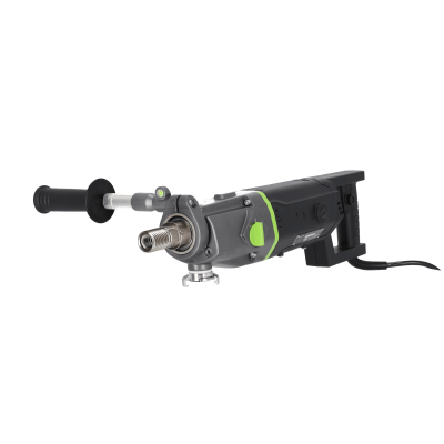O instalație de foraj cu diamante cu micro-impact pentru funcționare uscată este o unealtă electrică destinată lucrărilor de construcții. Este folosit pentru a face găuri în substraturile de construcție portante, cum ar fi cărămizi, beton ușor și beton armat greu cu umplutură de granit. Echipamentul va fi util în primul rând pentru lucrările efectuate de instalatorii de rețele electrice, de aer condiționat, de încălzire, de gaze și alte rețele. Poate manevra carotaje cu un diametru de până la 132 mm.