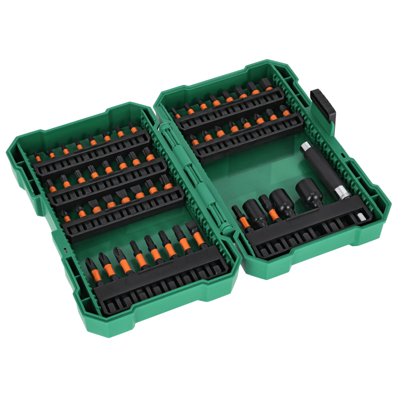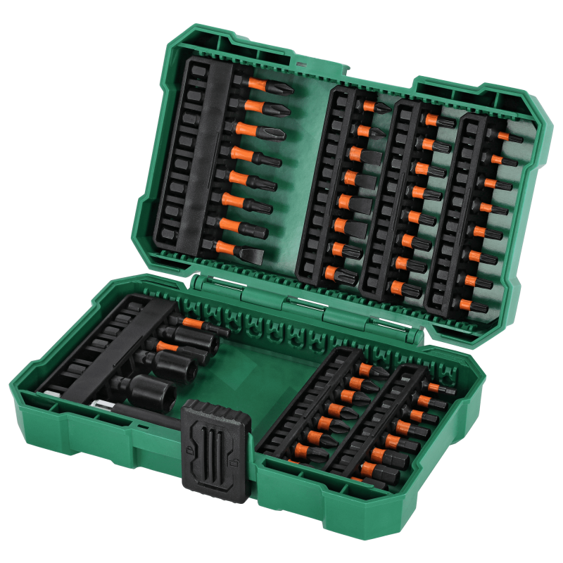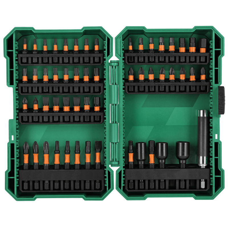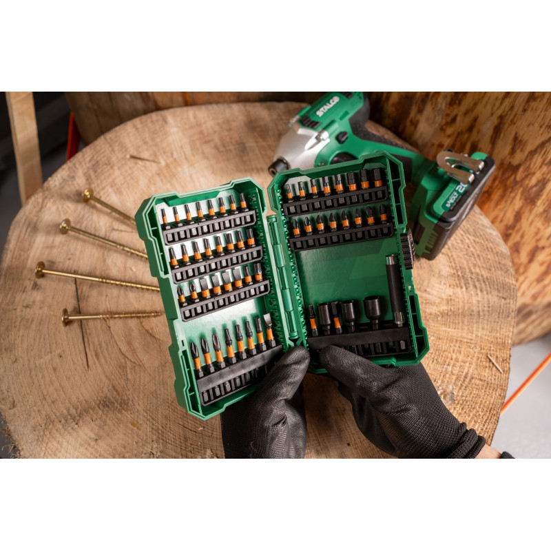 Când căutați echipament pentru un atelier mare, merită să alegeți acest set de biți de impact și prize de 1/4 inch. Acesta este unul dintre cele mai mari seturi de acest tip disponibile în oferta STALCO. Conține biți care pot fi folosiți pentru a manipula multe tipuri de șuruburi și șuruburi. Setul de biți de impact și prize de 1/4 inch STALCO este format din 54 de elemente. Acestea sunt în principal biți de șurub și mufe magnetice pentru acționarea șuruburilor. Toate sunt realizate din oțel S2 și formate pentru a fi utilizate în instrumentele de impact. Datorită acestui fapt, vârfurile sunt foarte durabile și rezistente la deformare. O protecție suplimentară este asigurată de ambalajul din plastic rezistent. Cu ajutorul lui, poți depozita mai ușor accesoriile și poți păstra în ordine articolele mici.